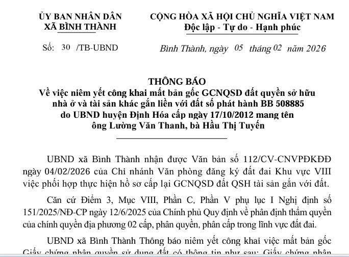 Ngày 26/12/2025, tại Hội trường lớn trụ sở Đảng ủy – HĐND – UBMTTQ Việt Nam xã, Đảng ủy xã Bình Thành tổ chức Hội nghị tổng kết công tác lãnh đạo thực hiện nhiệm vụ chính trị, công tác thi đua năm 2025; triển khai nhiệm vụ chính trị và phát động phong trào thi đua yêu nước năm 2026.